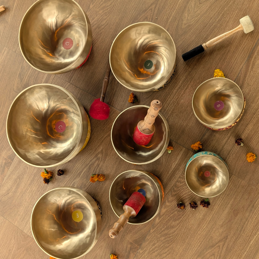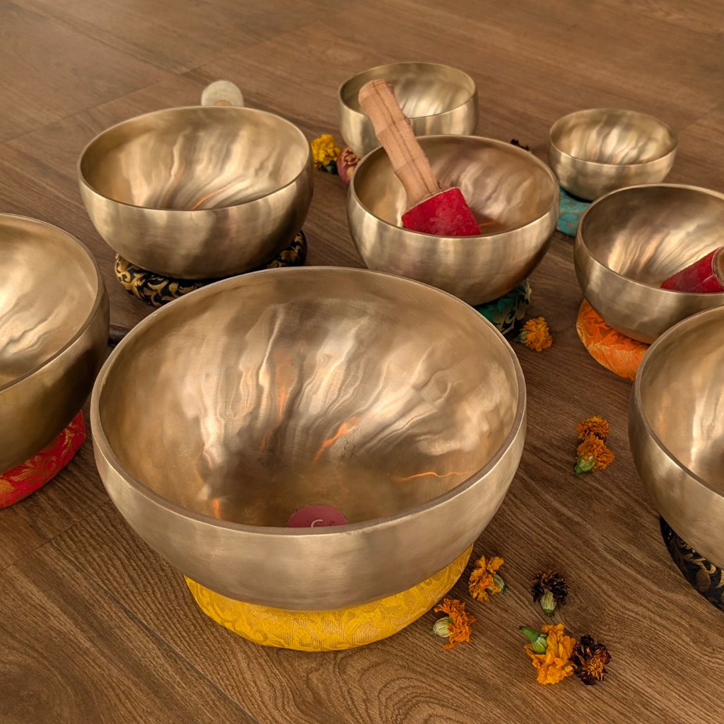 Used in sound healing, meditation, yoga nidra, and energy work, this set helps clear blockages, align subtle bodies, and deepen inner awareness. When played in sequence, the bowls create a harmonic journey that moves through the body’s energy system, inviting release, balance, and renewed vitality.