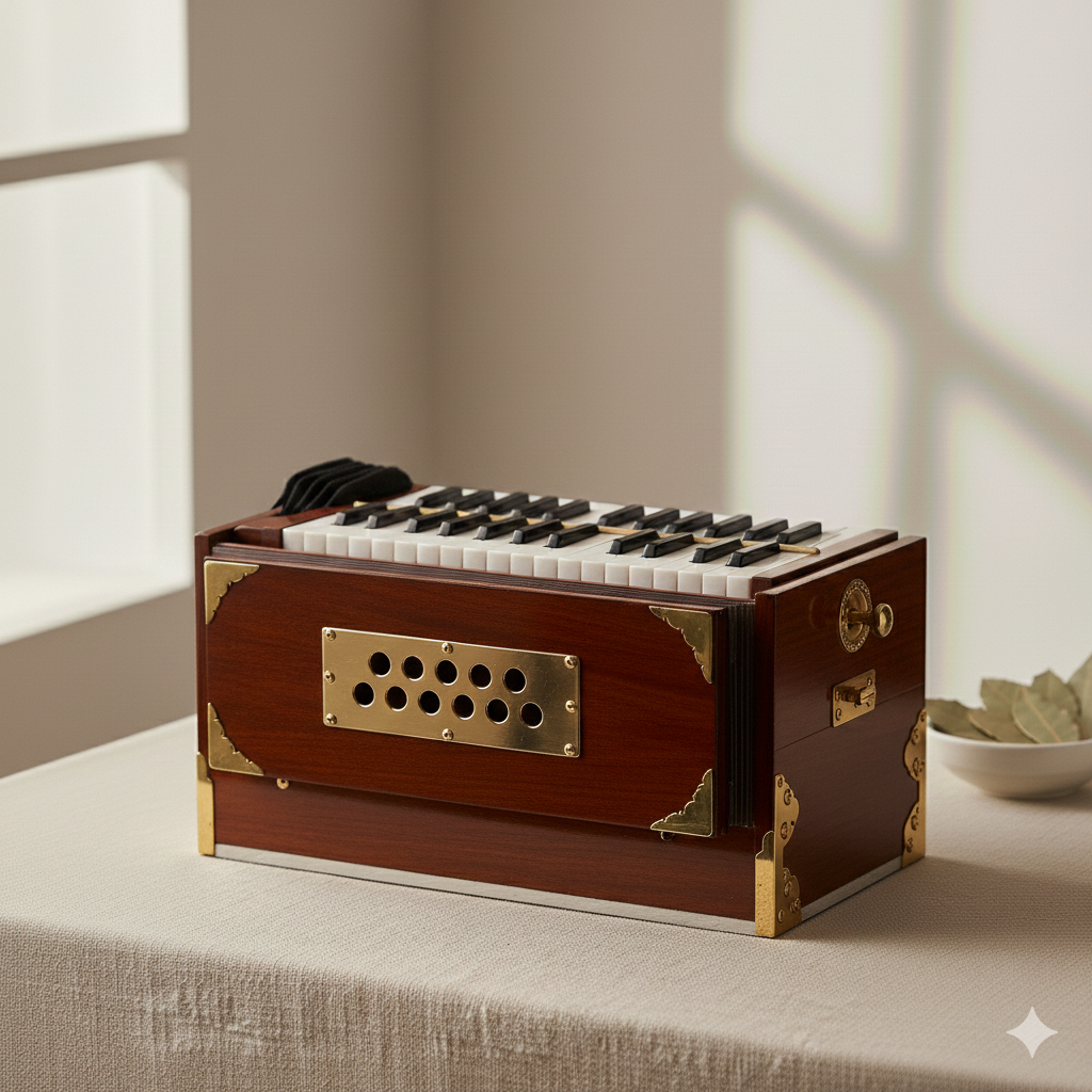The Harmonium is more than accompaniment. It is a living instrument of breath, devotion, and vibration, guiding practitioners into rhythm, unity, and inner stillness through sound.